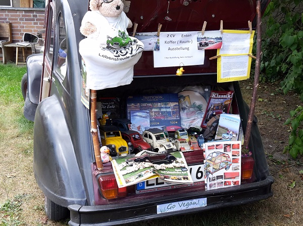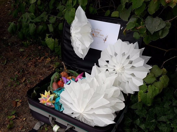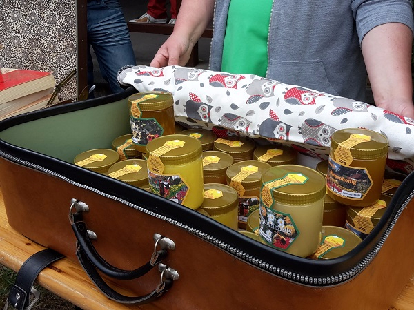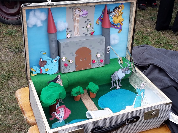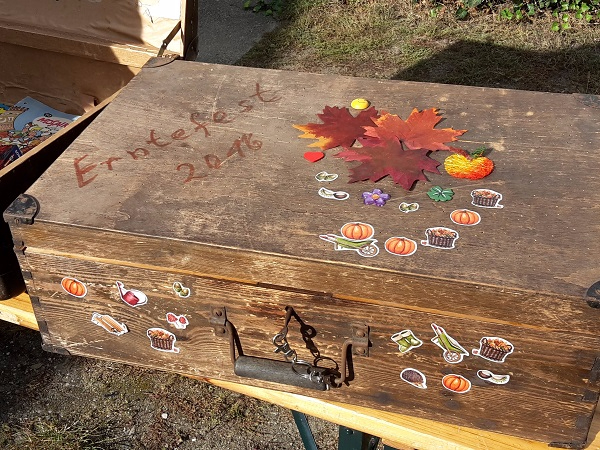 17 fantasievoll gestaltete Koffer standen zum Erntefest auf dem Hof des Landeis zum Gucken, Staunen oder Kaufen. Ein paar Bilder gibt es hier, aber das sind natürlich längst noch nicht alle: Auch eine Harry-Potter-Sammlung inklusive selbstgeschnitzter Zauberstäbe gab es zu bestaunen, ein Spielekoffer wartete auf Spieler oder in altem Hausrat fand sich eine vertrocknete Ratte. Auf jeden Fall gab es allerhand Gesprächsstoff für die Besucher. Die Auswahl des schönsten Koffers war deshalb nicht leicht, fiel dann aber auf den Koffer aus 1001 Nacht von Anika und Leonie.